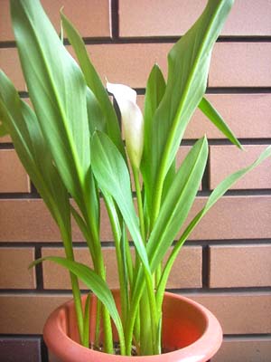 花が咲いた。三年ぶりにカラーの花が咲いた。